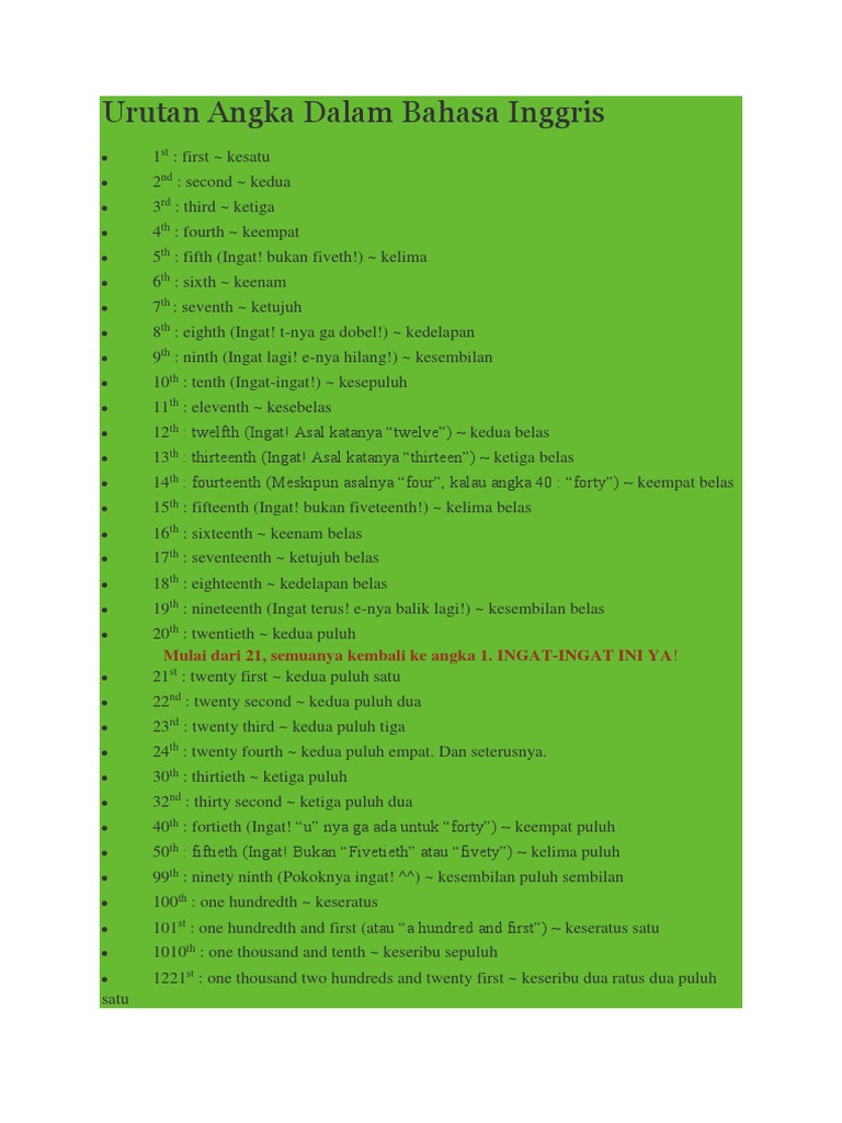 Urutan Angka Dalam Bahasa Inggris