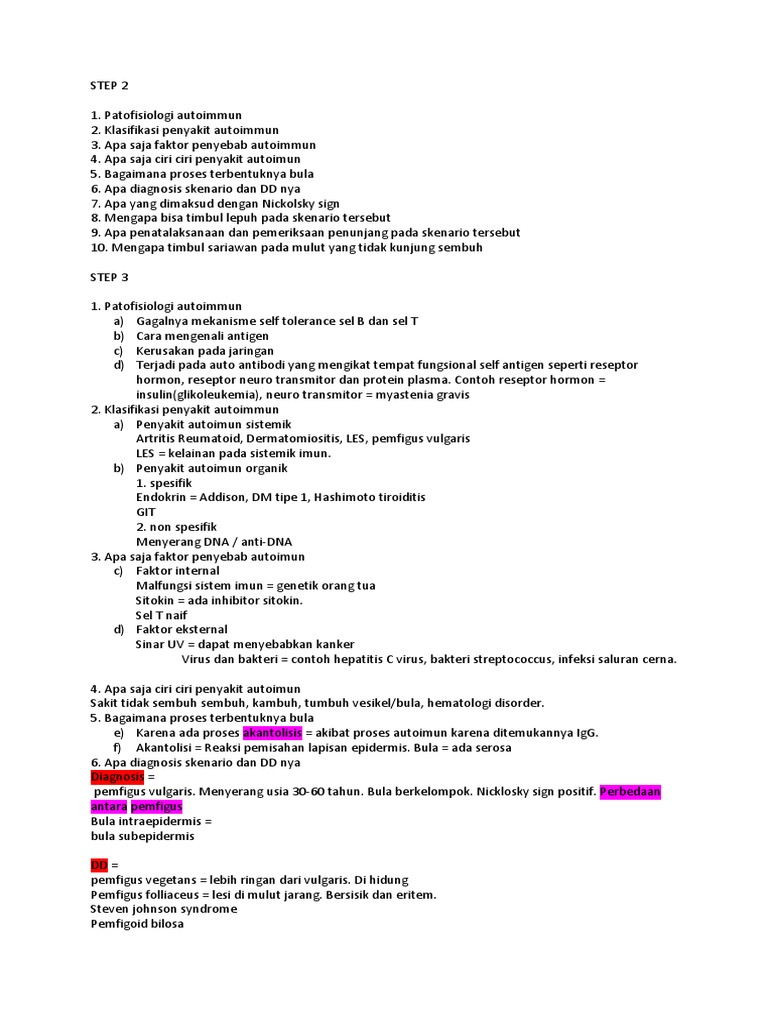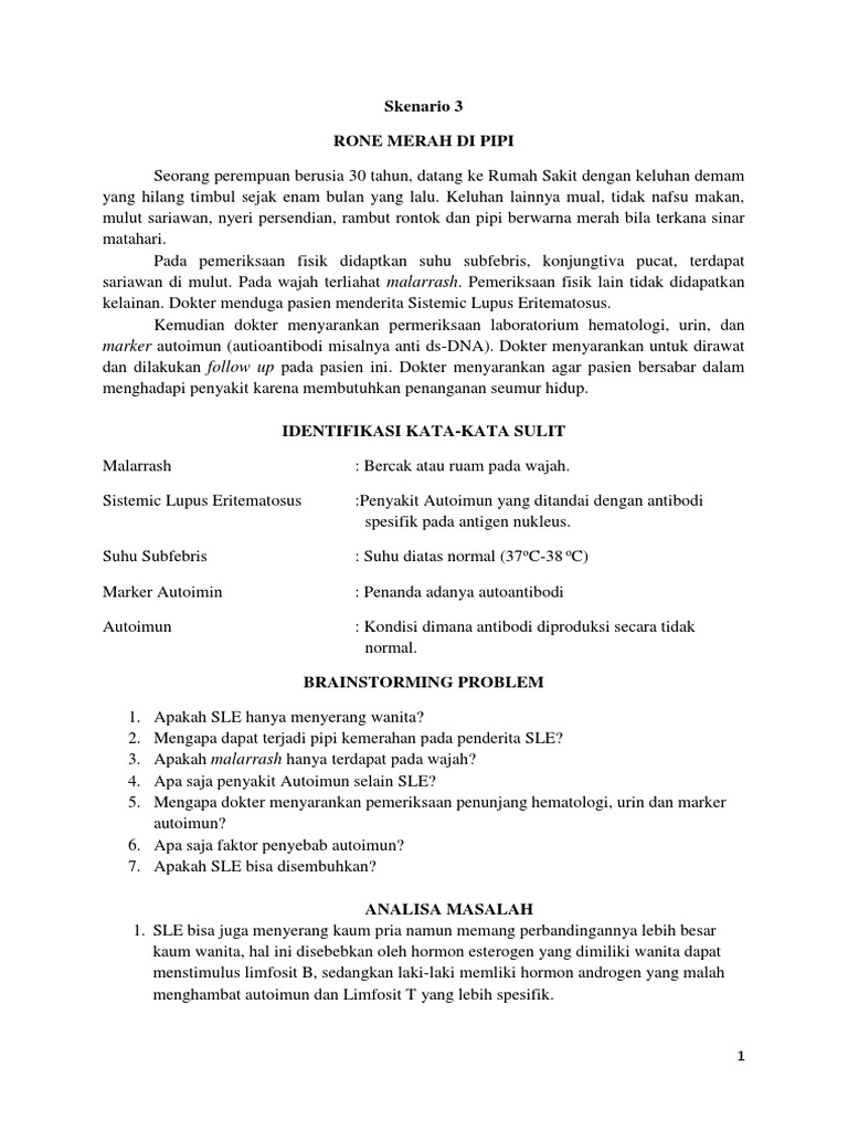 Skenario 3 Rone Merah Di Pipi: marker autoimun (autioantibodi misalnya anti ds-DNA). Dokter menyarankan untuk dirawat