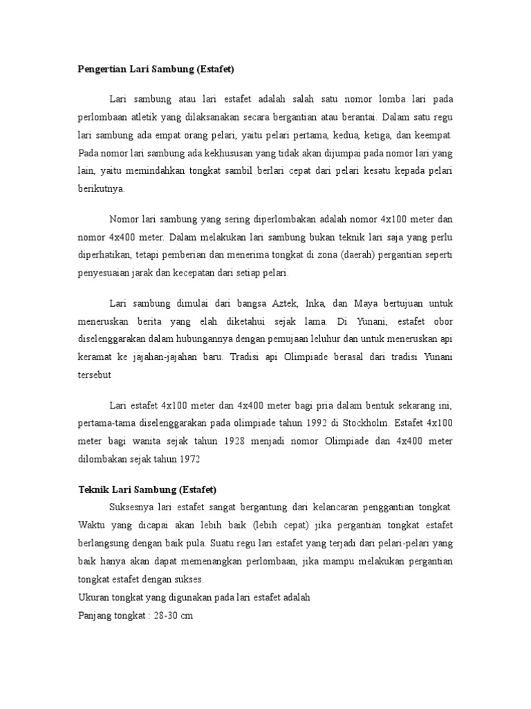 LARI ESTAFET (Pengertian Lari Estafet, Sarana dan Peralatan …