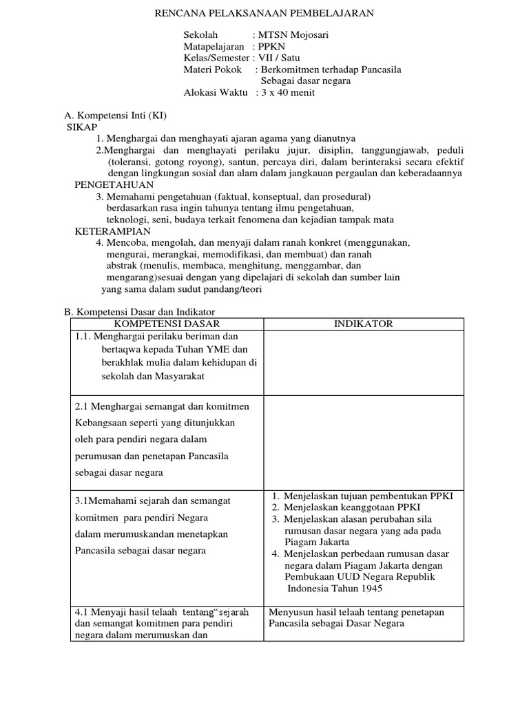 Rpp ppl 2 kelas 7 bab 1 tentang berkomitmen terhadap pancasila sebaga…