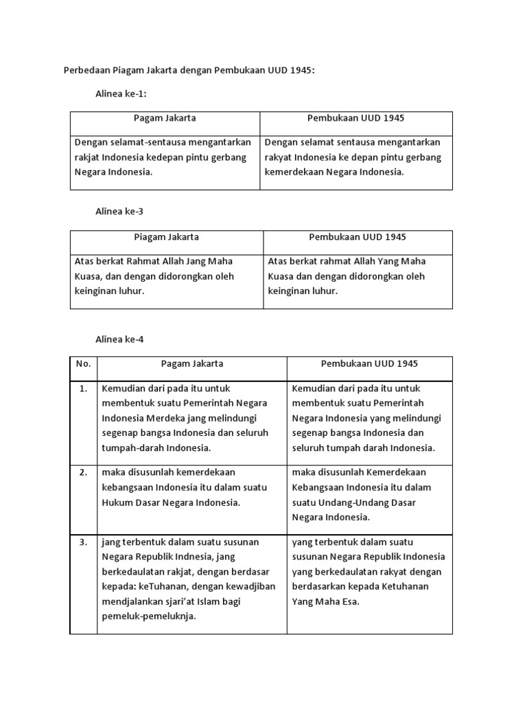 Apa Perbedaan Rumusan Dasar Negara Dalam Piagam Jakarta Dengan Pembukaan Uud 1945