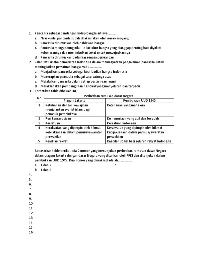 Soal dan jawaban UTS MK Pancasila Sem. Ganjil Prodi Komunikasi UNSERA