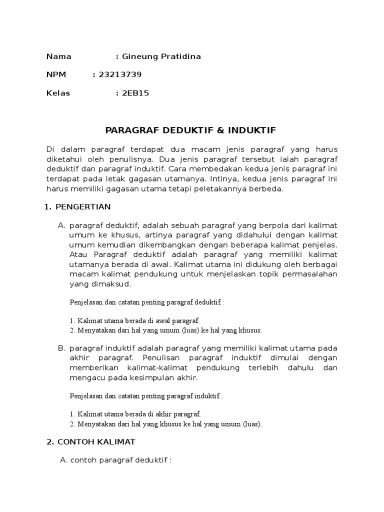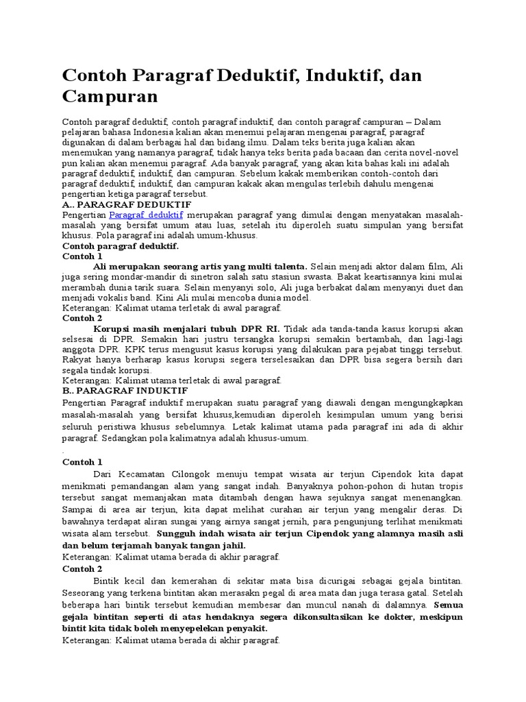 DOC) Contoh Paragraf Deduktif, Induktif, dan Campuran | Zatria …