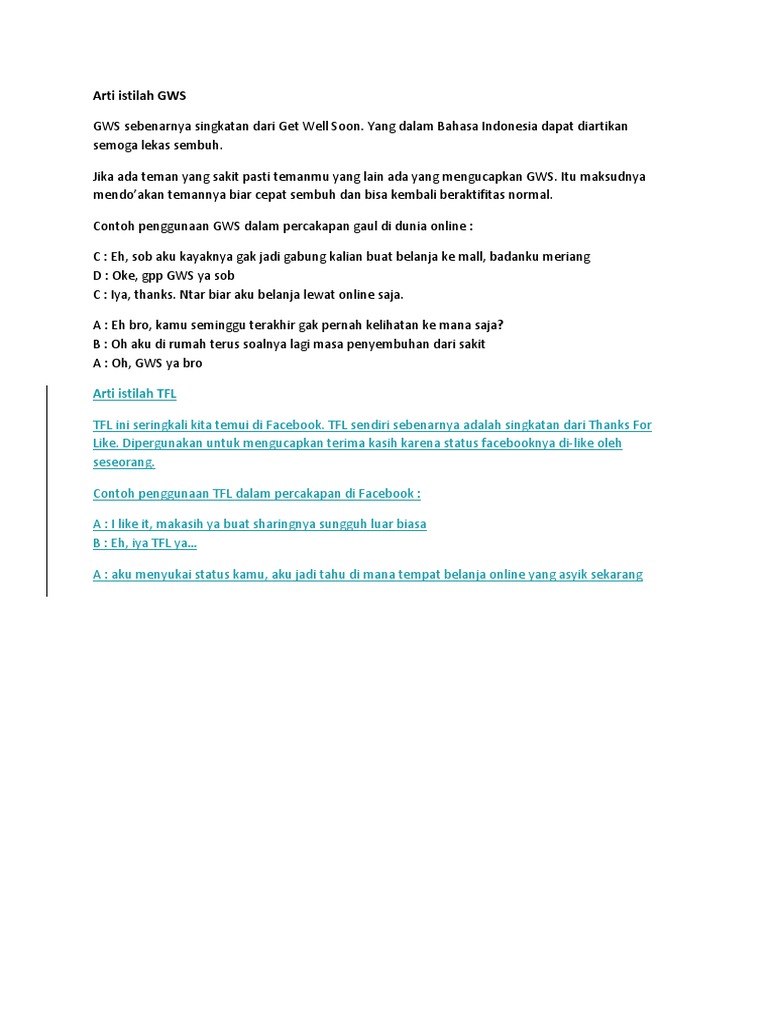 Apa arti ‘GWS’ dalam bahasa gaul? - Quora