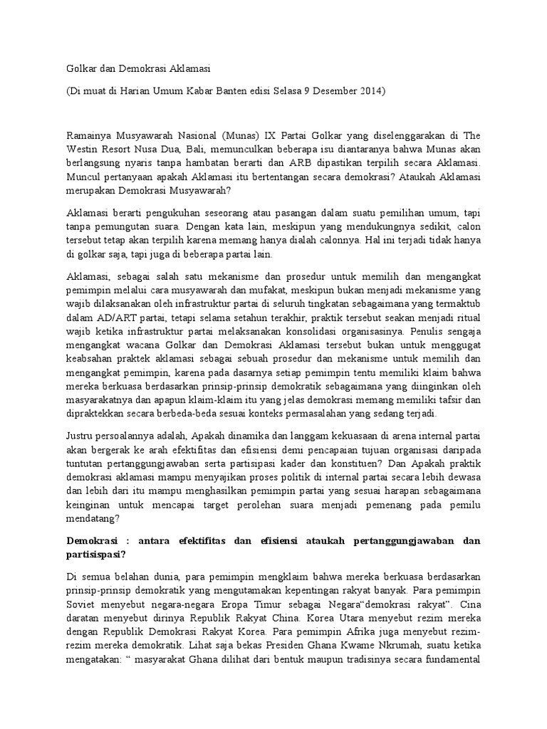 Odih Hasan . Golkar Dan Demokrasi Aklamasi