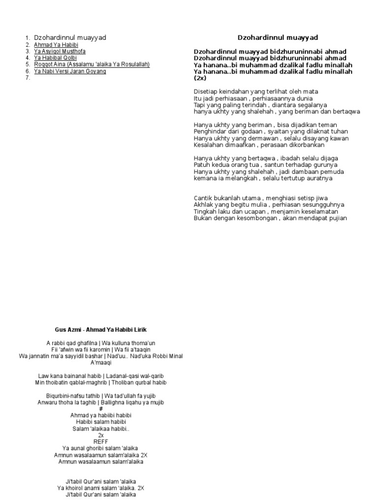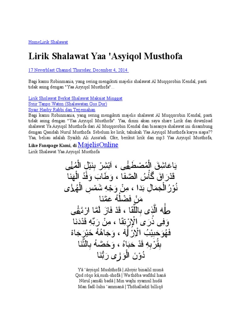 DOC) Lirik dan Arti Sholawat Ya Asyiqol Musthofa.docx | Rizal …