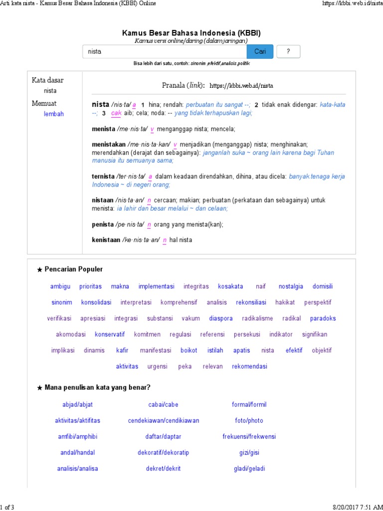 6 Arti Kata Nista di Kamus Besar Bahasa Indonesia (KBBI) | Lektur.ID