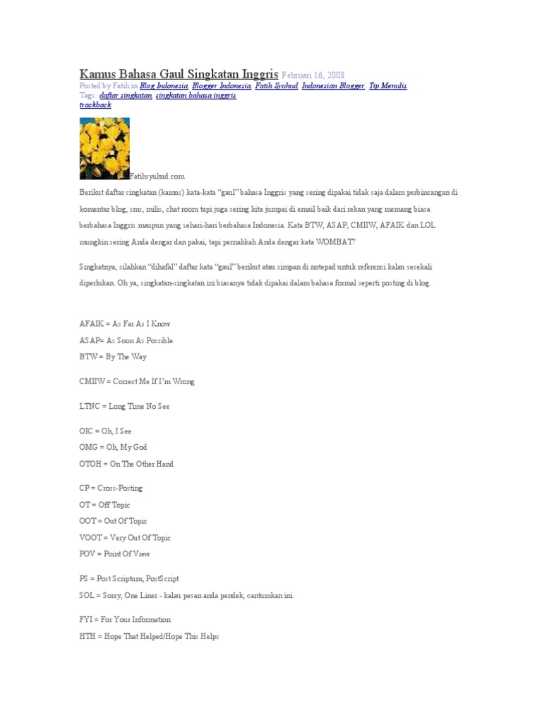 Kumpulan Istilah dan Singkatan Bahasa Inggris Gaul Beserta Artinya …
