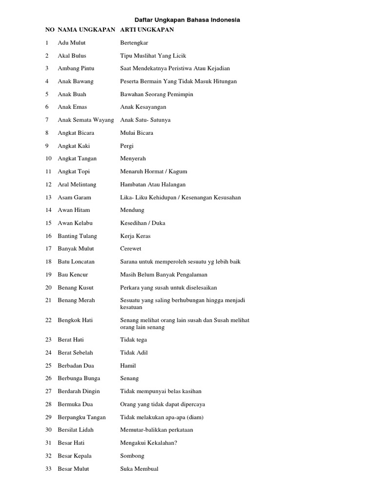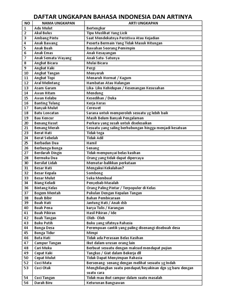 Daftar Ungkapan Bahasa Indonesia Dan Artinya