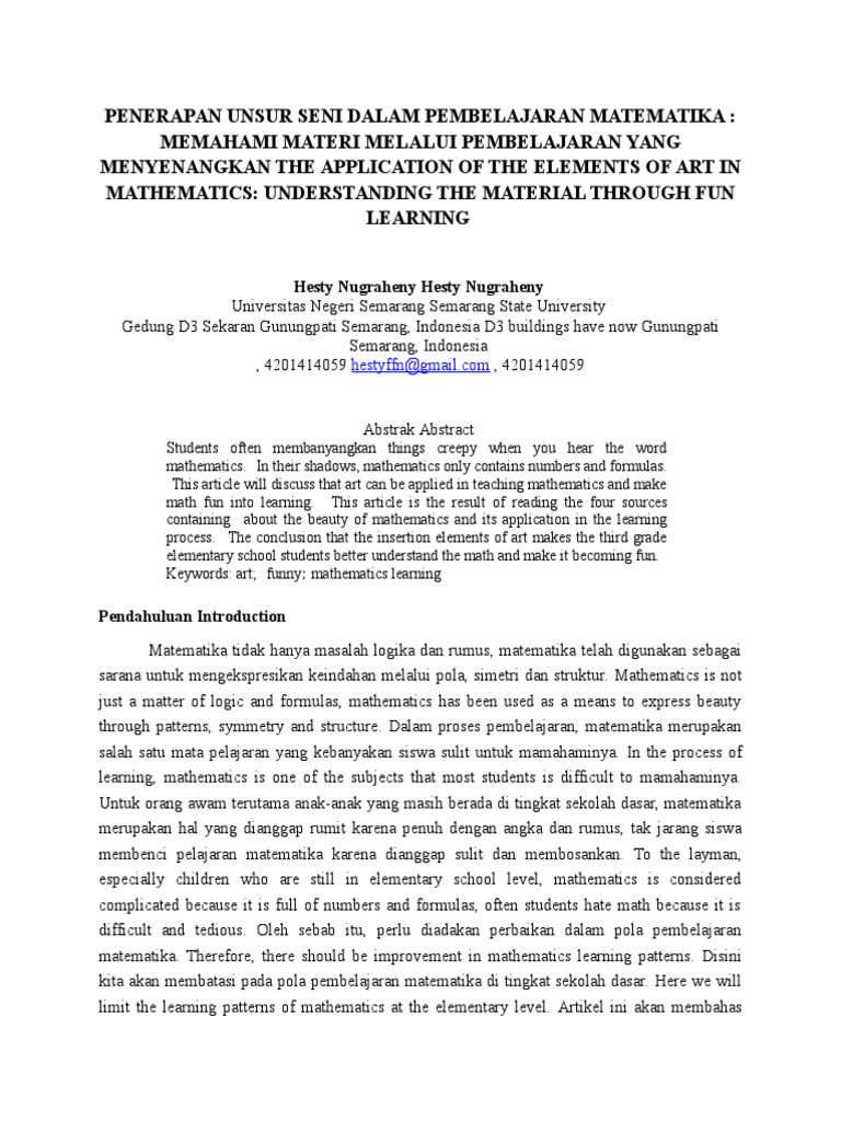 266528681-Artikel-Bahasa-Inggris-Pembelajaran-Matematika-dengan-Unsur-Seni.docx | Teaching Mathematics | Rational Number