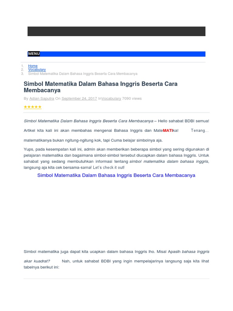 Top PDF Cara Membaca Simbol Matematika dalam Bahasa Inggris - 123dok.com