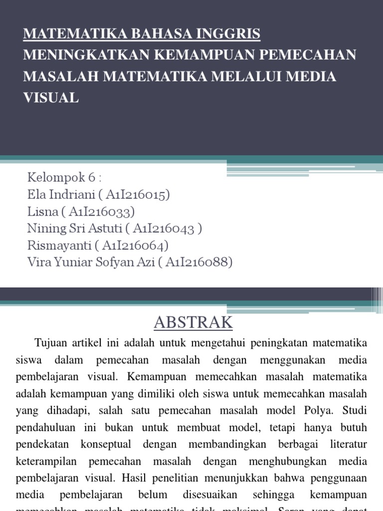 Matematika Bahasa Inggris Meningkatkan Kemampuan Pemecahan Masalah Matematika Melalui Media Visual