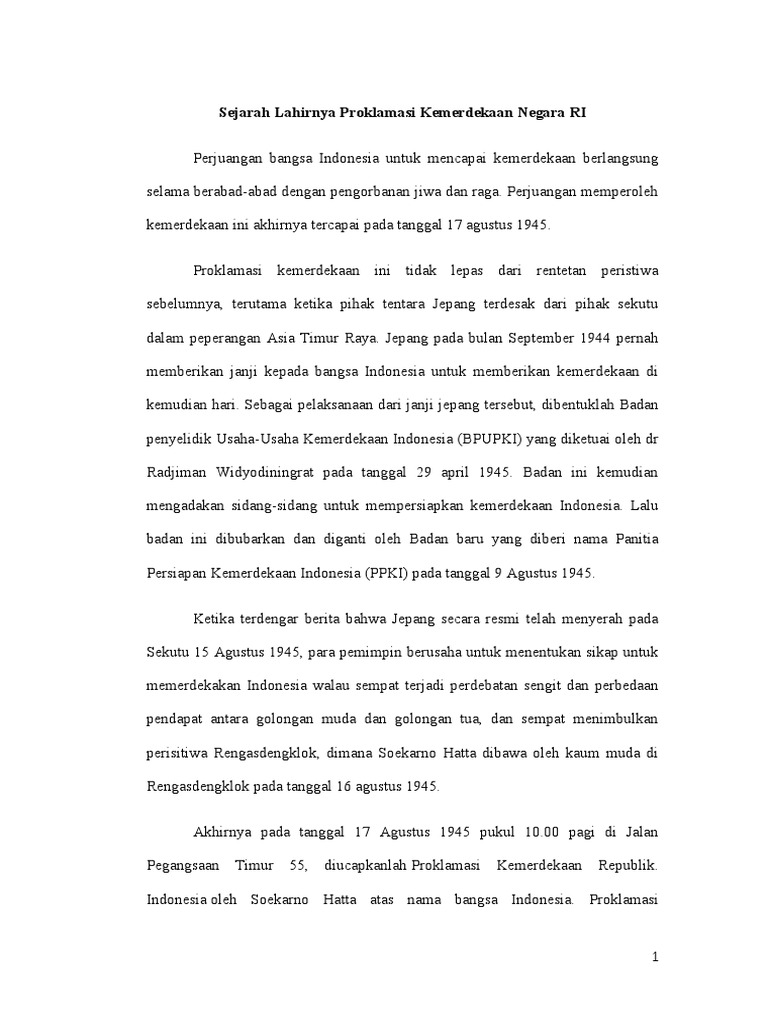 DOC) PERISTIWA SEKITAR PROKLAMASI 17 AGUSTUS 1945 DAN PEMBENTUKAN PEMERINTAHAN INDONESIA | Rinto Odegawa - Academia.edu
