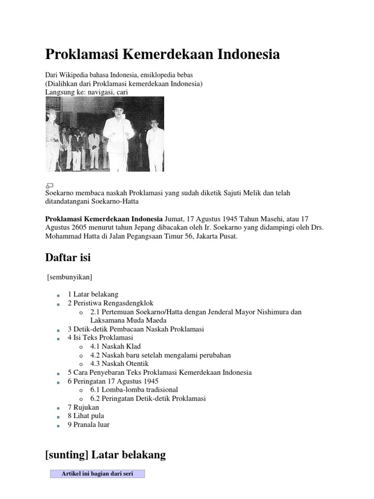 Proklamasi Kemerdekaan Indonesia - Wikipedia bahasa Indonesia, ensiklopedia bebas