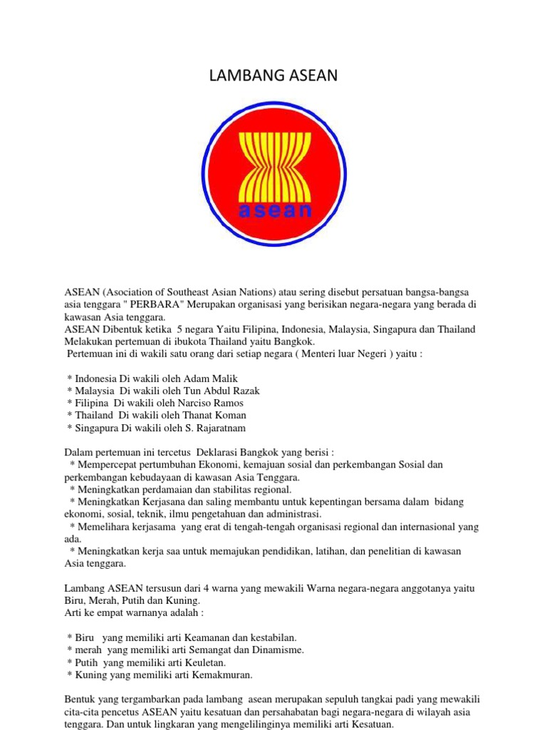 Sejarah Asean Lengkap, Perjanjian, Piagam, Lambang, Pembentukan