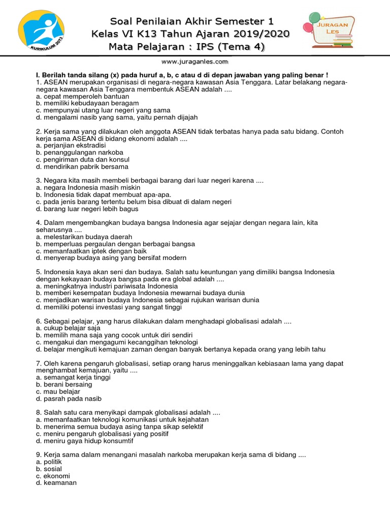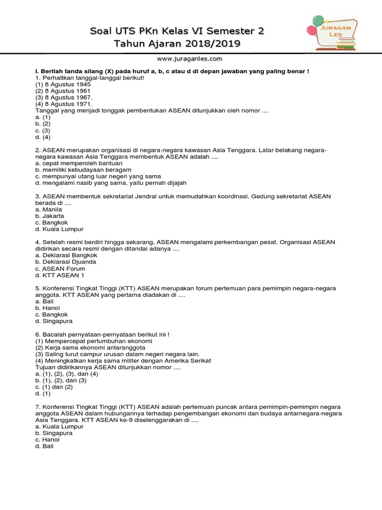 Soal Uts Pkn Kelas Vi Semester 2 Tahun Ajaran 2018/2019