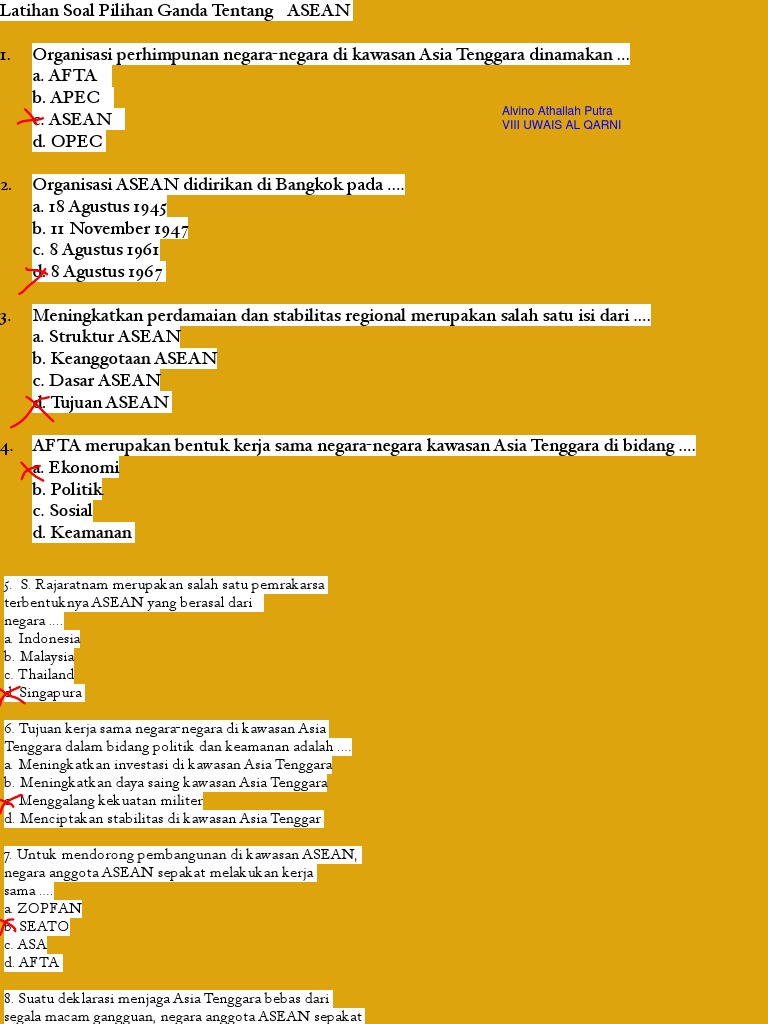 7.Berikut ini yang merupakan bentuk kerja sama ASEAN di bidang …