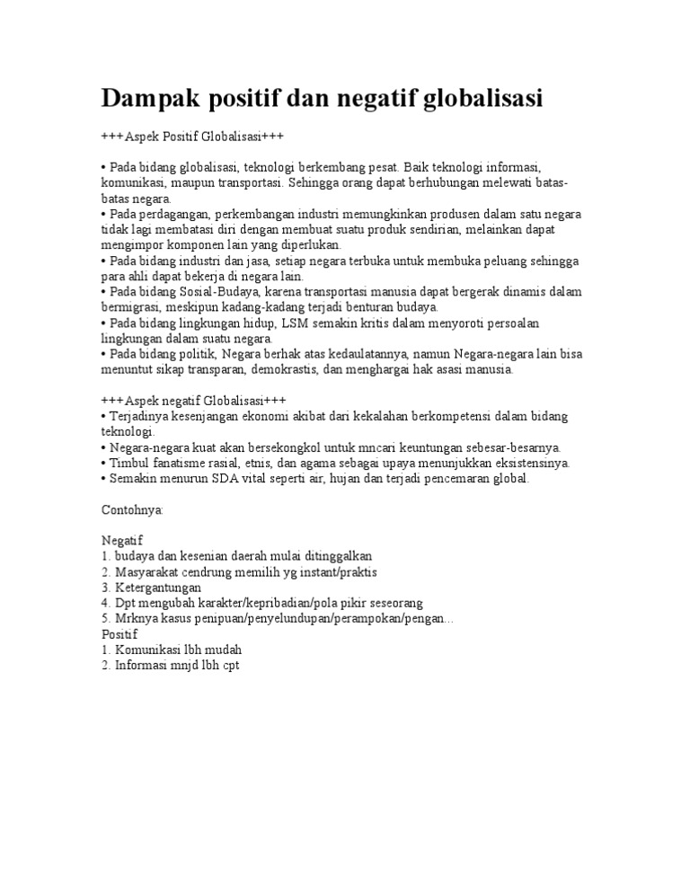 DOC) DAMPAK POSITIF DAN NEGATIF GLOBALISASI | Naufal Rafiyanto - Academia.edu
