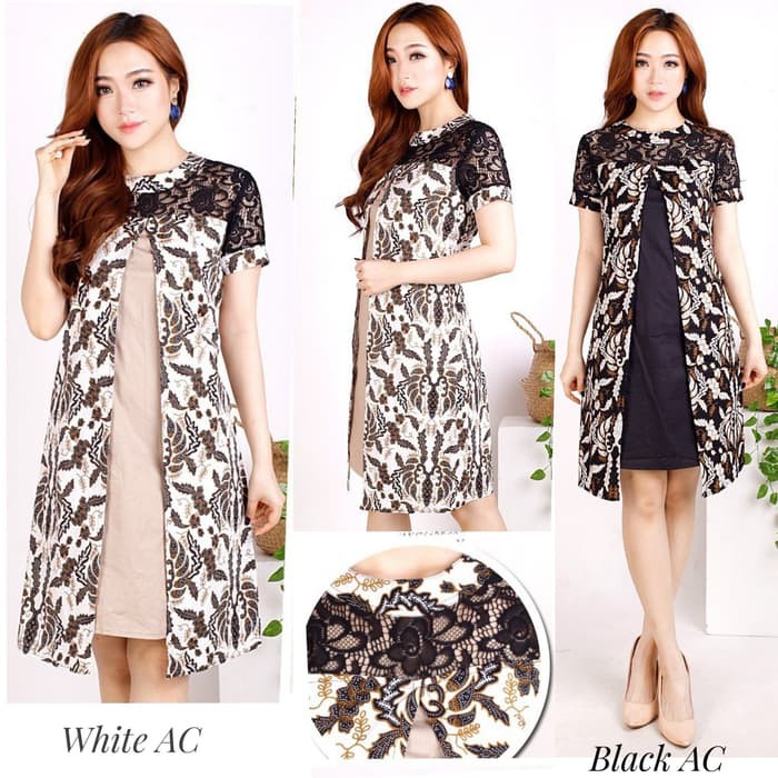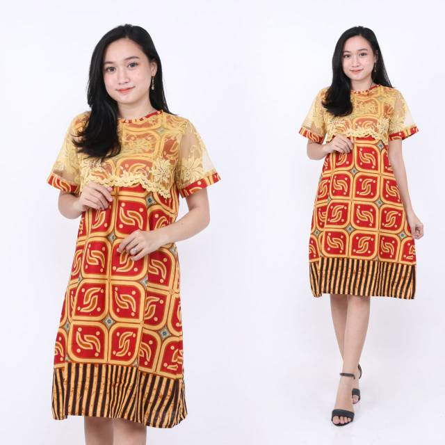 Jual DRESS BATIK KOMBINASI BROKAT/DRESS BATIK MODERN/BAJU BATIK …