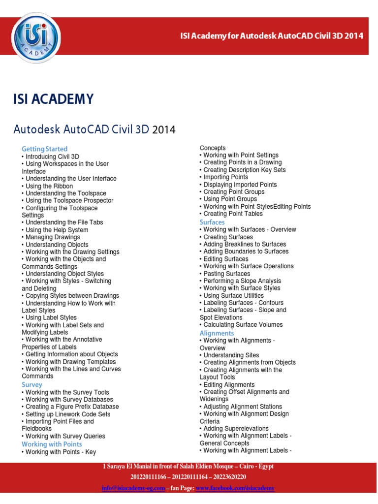 ISI Academy Outline Autodesk AutoCAD Civil 3D 2014 | Auto Cad …