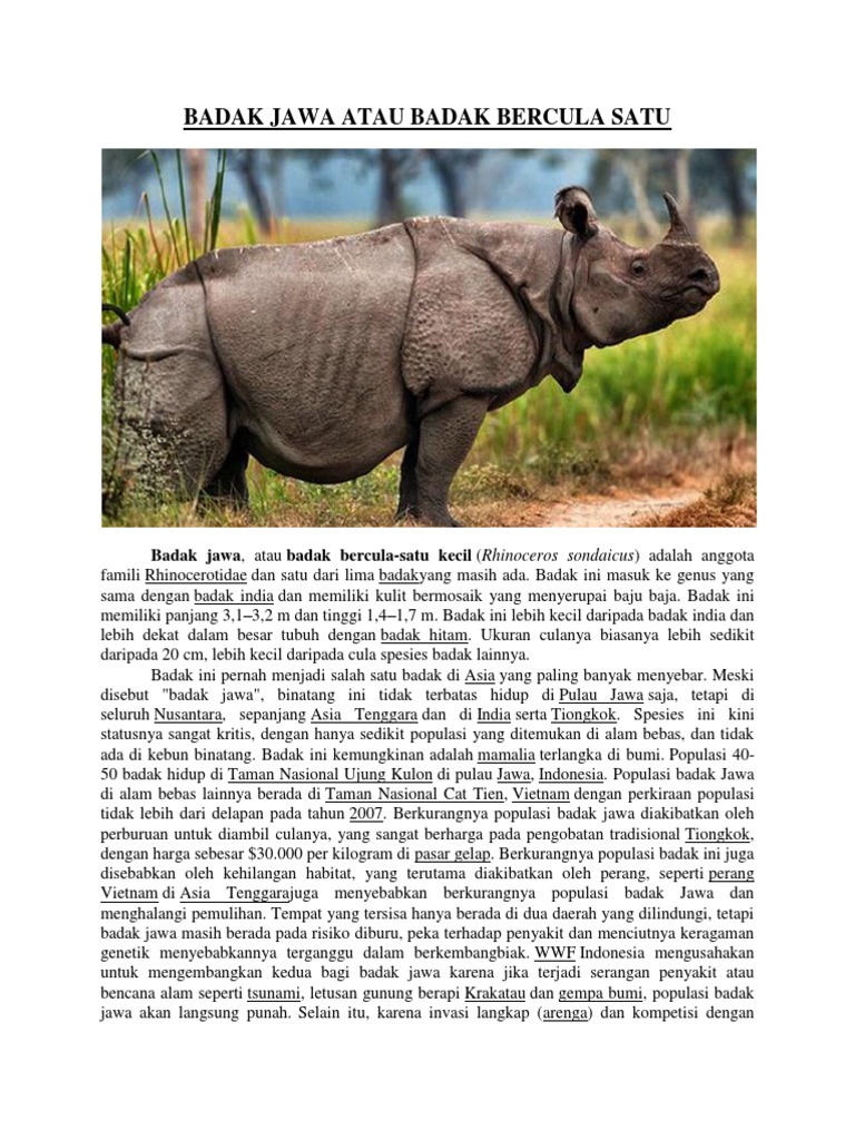 Teks Deskriptif Tentang Badak Bercula Satu/ Badak Jawa, Full …
