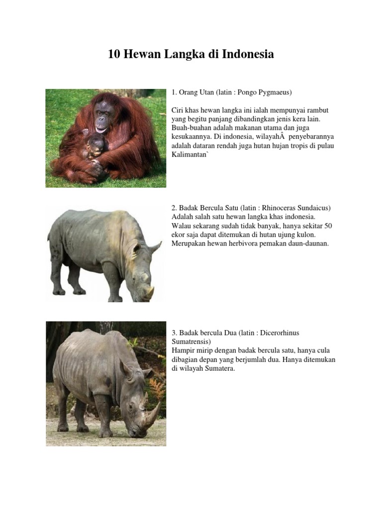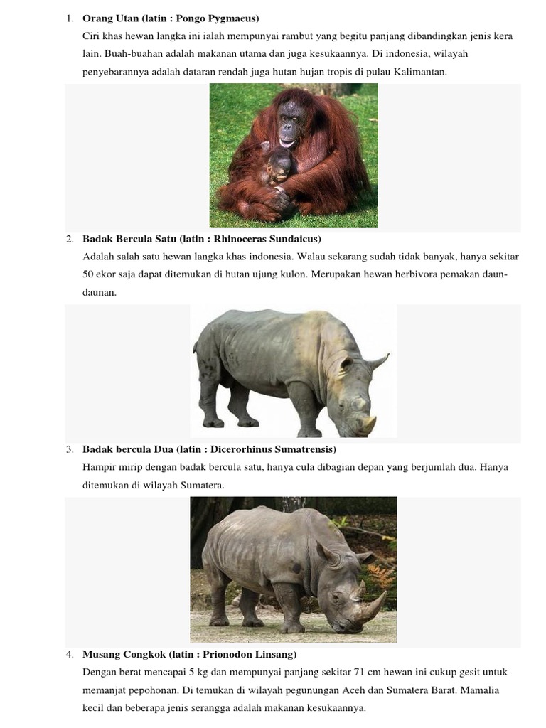 7 hewan yang Terancam Punah di Wilayah Indonesia dan daerah …