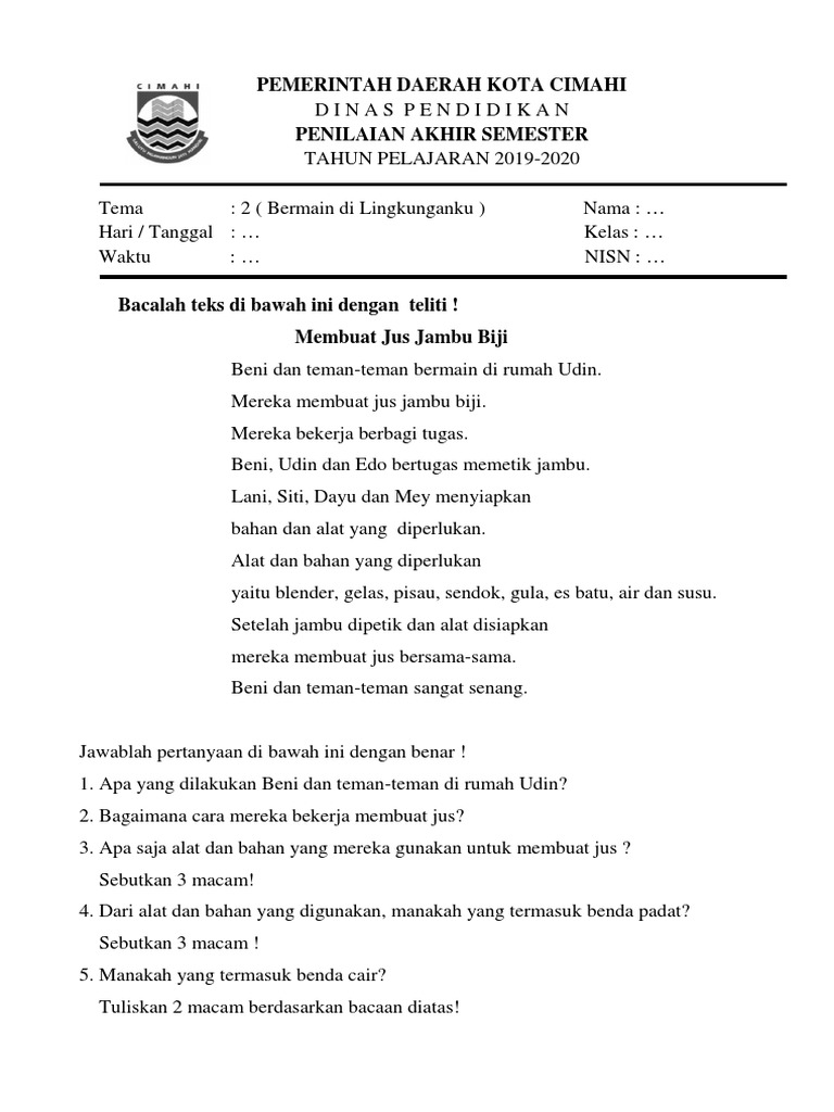 Kunci Jawaban Bacaan Membuat Jus Jambu Kelas 2 - SDonline