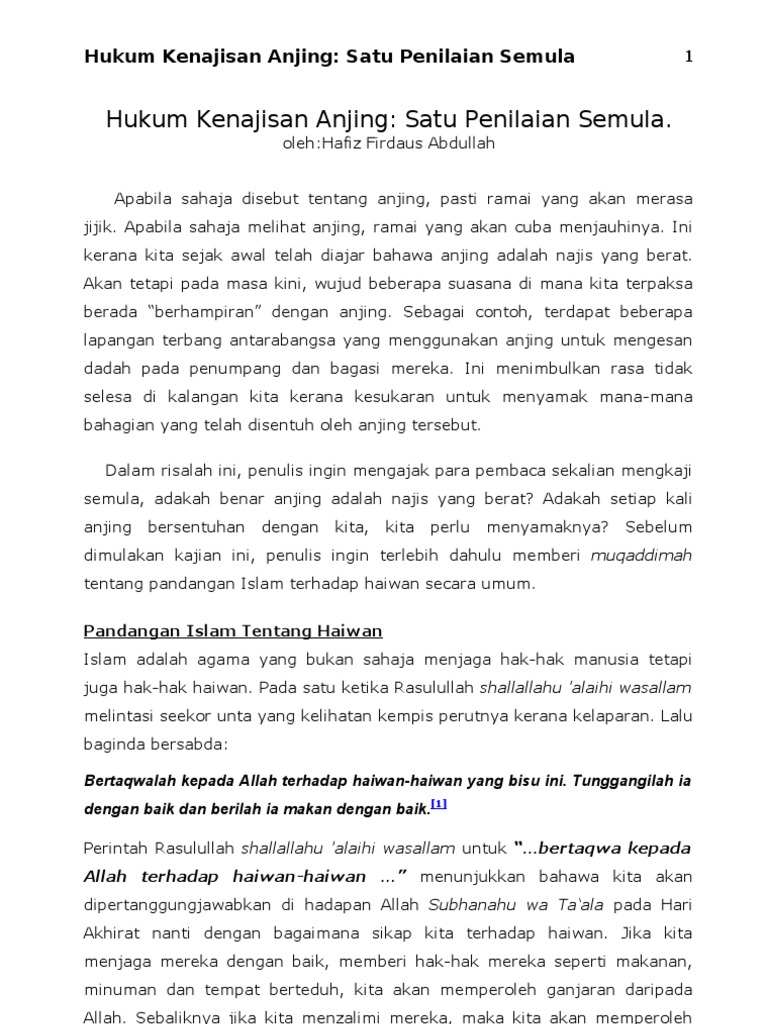 Hukum Kenajisan Anjing: Satu Penilaian Semula