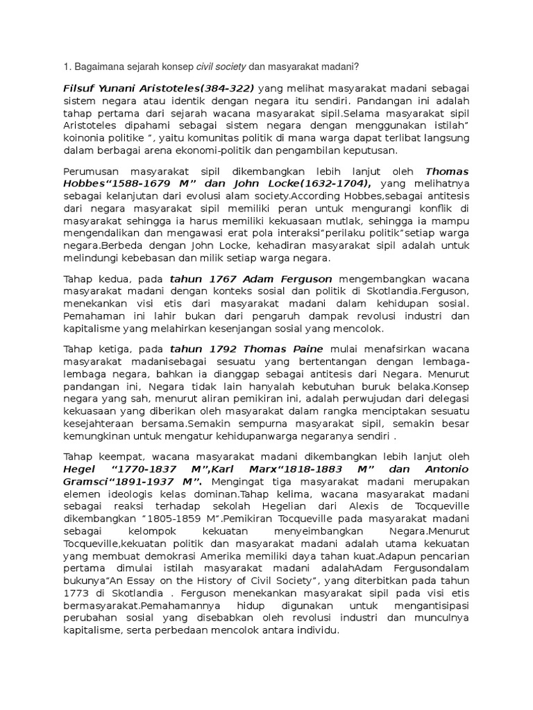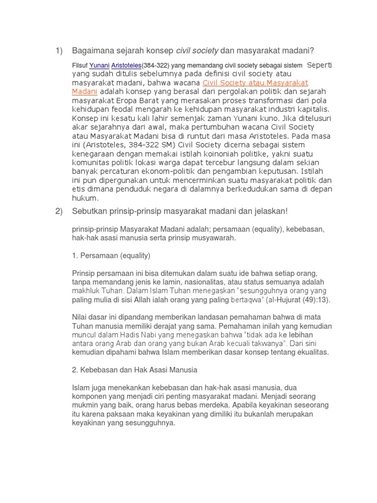 Tugas 1 Agama.docx - 1 Bagaimana sejarah konsep civil society dan masyarakat madani Jawab konsep masyarakat madani adalah penerjemahan dan | Course Hero
