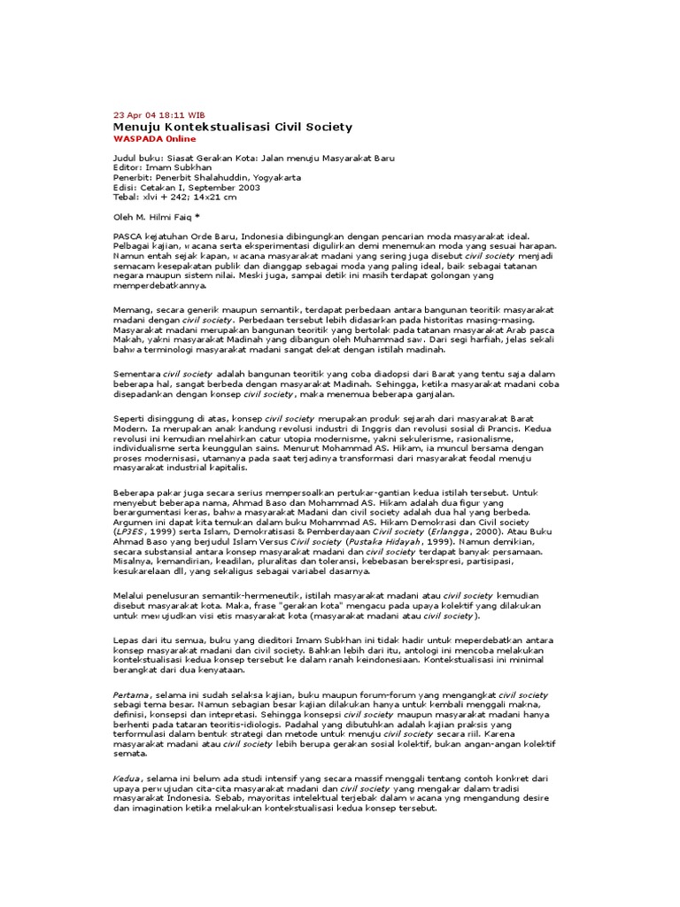 PDF) CIVIL SOCIETY DALAM WAJAH KEISLAMAN DAN KEINDONESIAAN