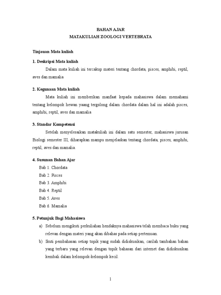 Bahan Ajar Matakuliah Zoologi Vertebrata