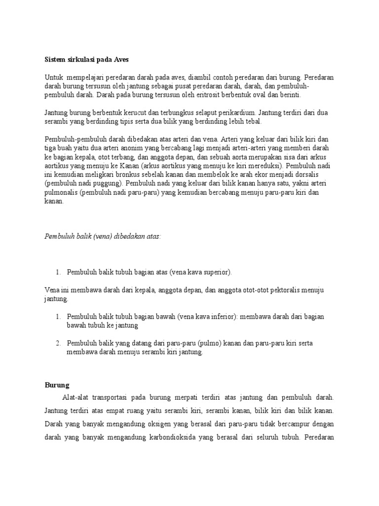 Sistem Sirkulasi Pada Aves
