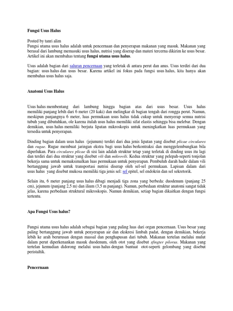 Struktur dan Fungsi Usus Halus Manusia