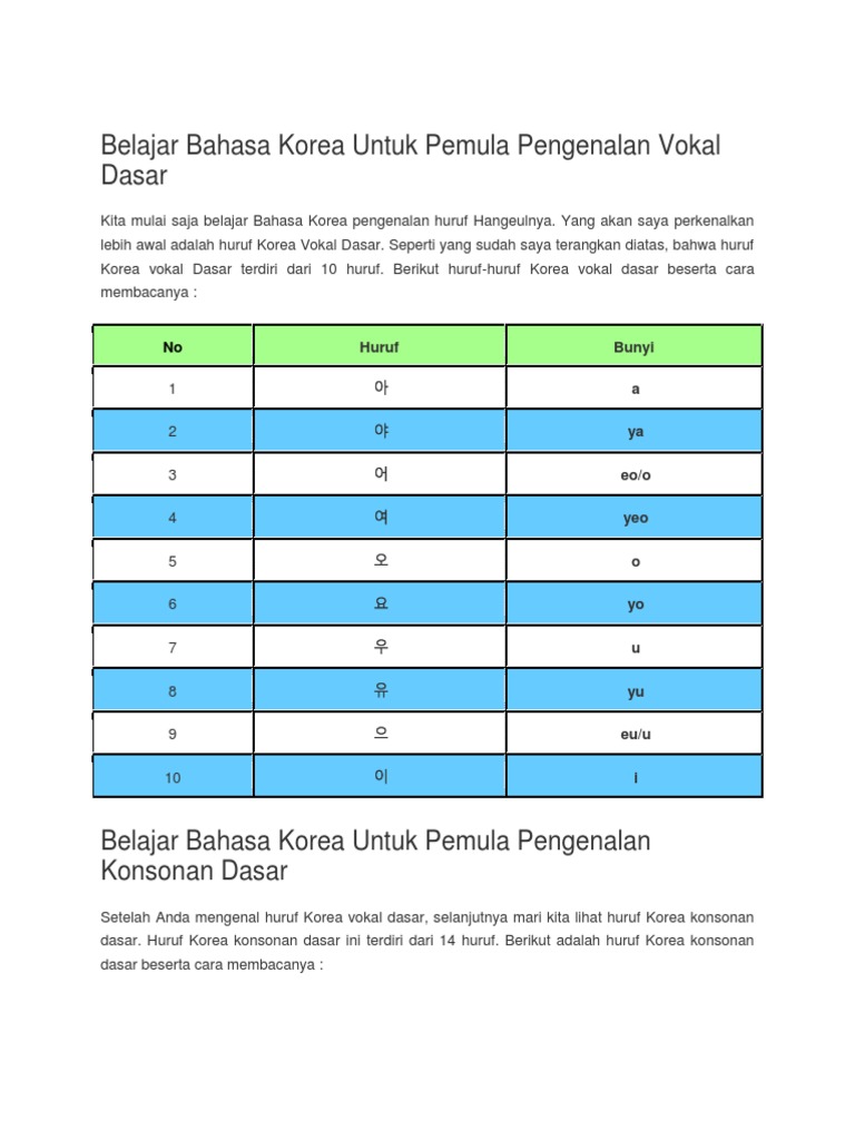 Belajar Bahasa Korea Untuk Pemula Pengenalan Vokal Dasar
