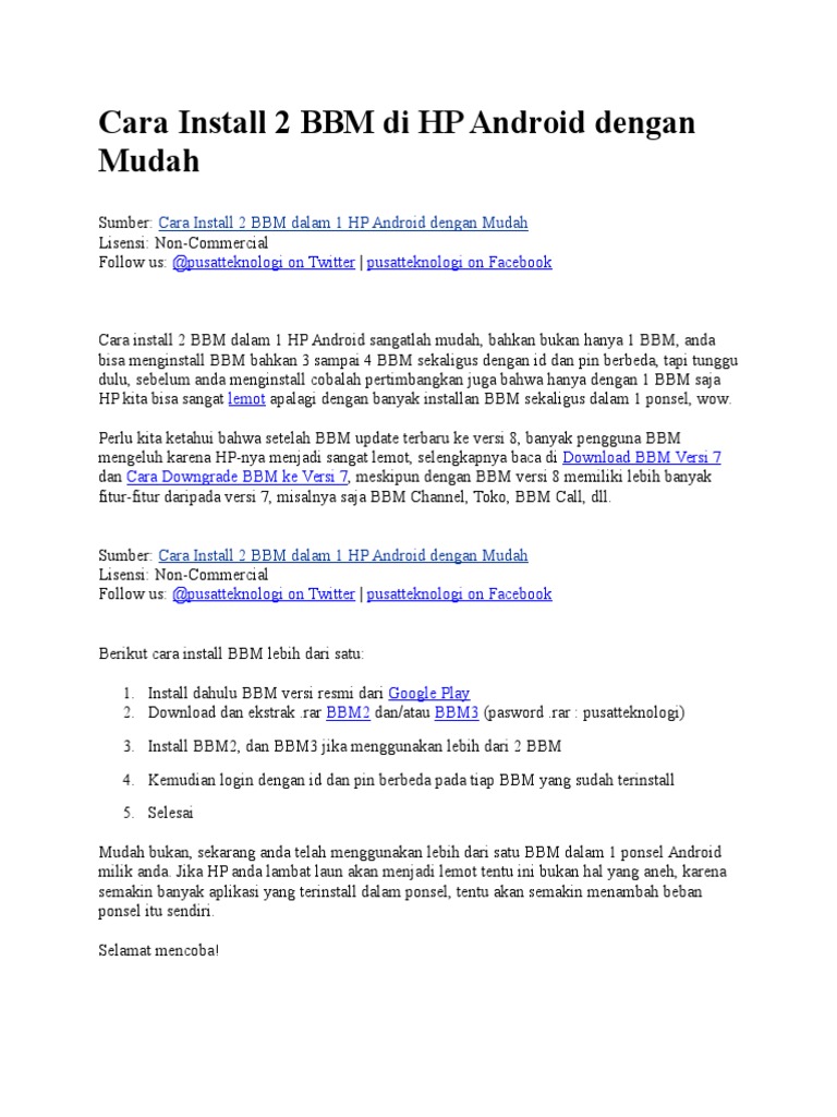 Cara Install 2 BBM Di HP Android Dengan Mudah