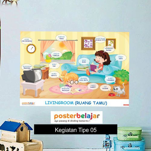 TIPE 05 POSBEL Poster Pendidikan KEGIATAN Mengenal Nama BENDA di Ruang Tamu | Shopee Indonesia