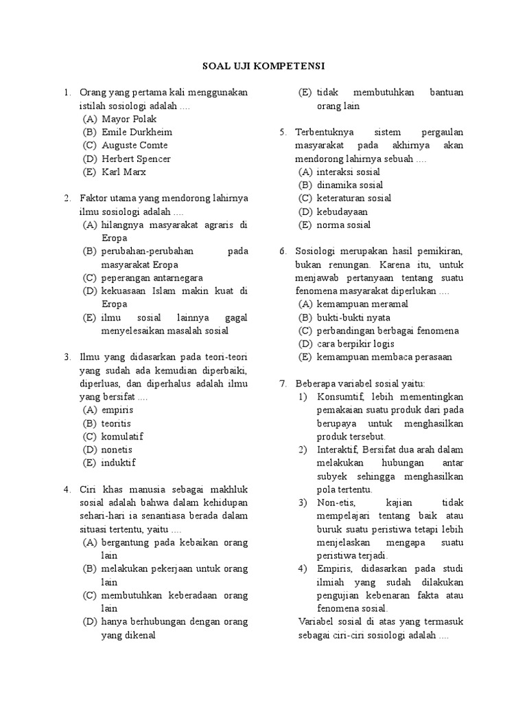 Bank Soal Sosiologi X; Aplikasi Sosiologi