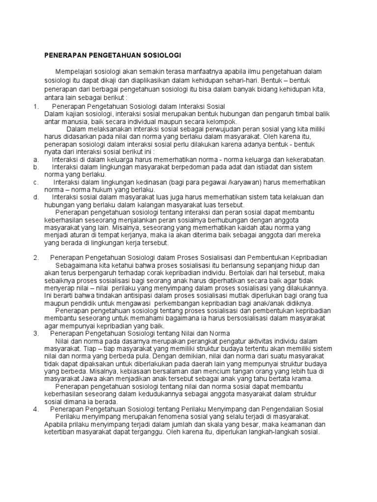 Bentuk Penerapan Pengetahuan Sosiologi | mufrikaa