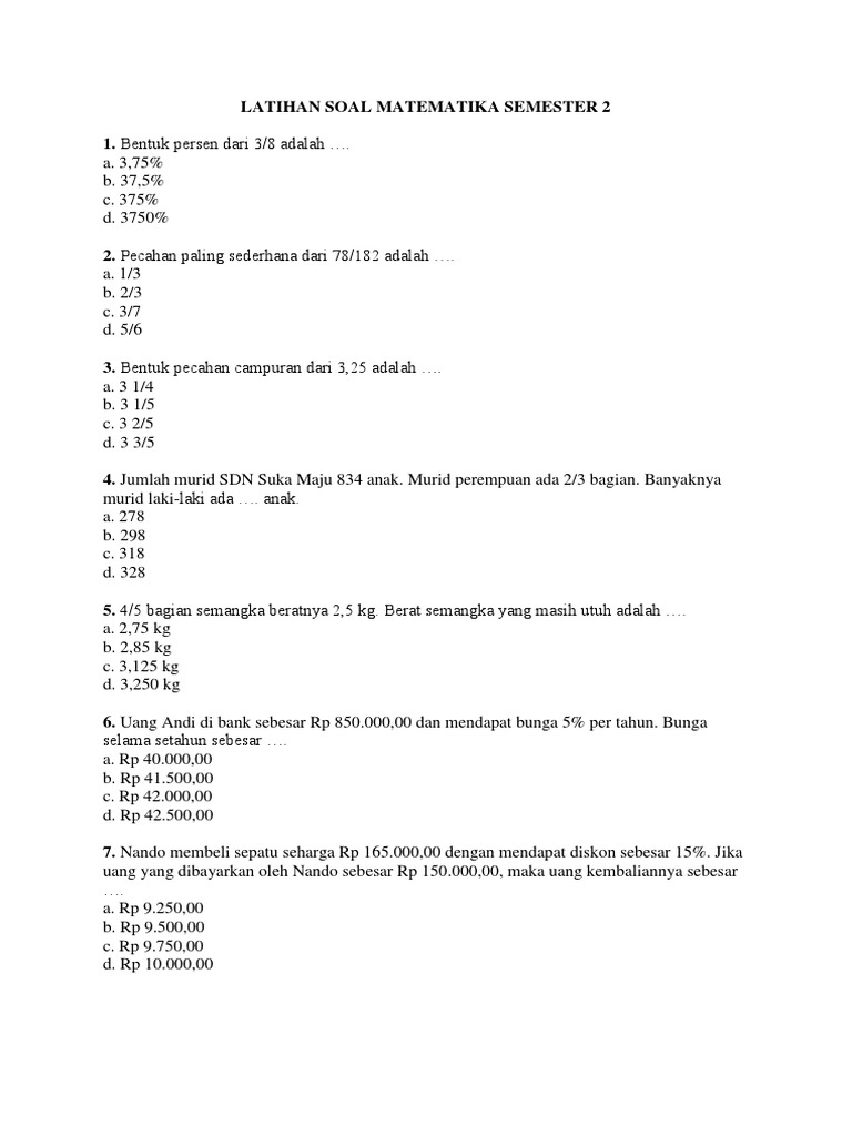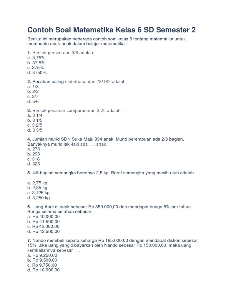 Contoh Soal Matematika Kelas 6 SD Semester 2
