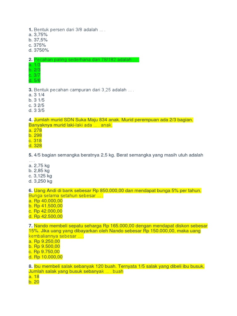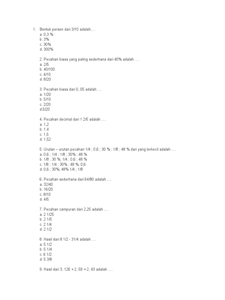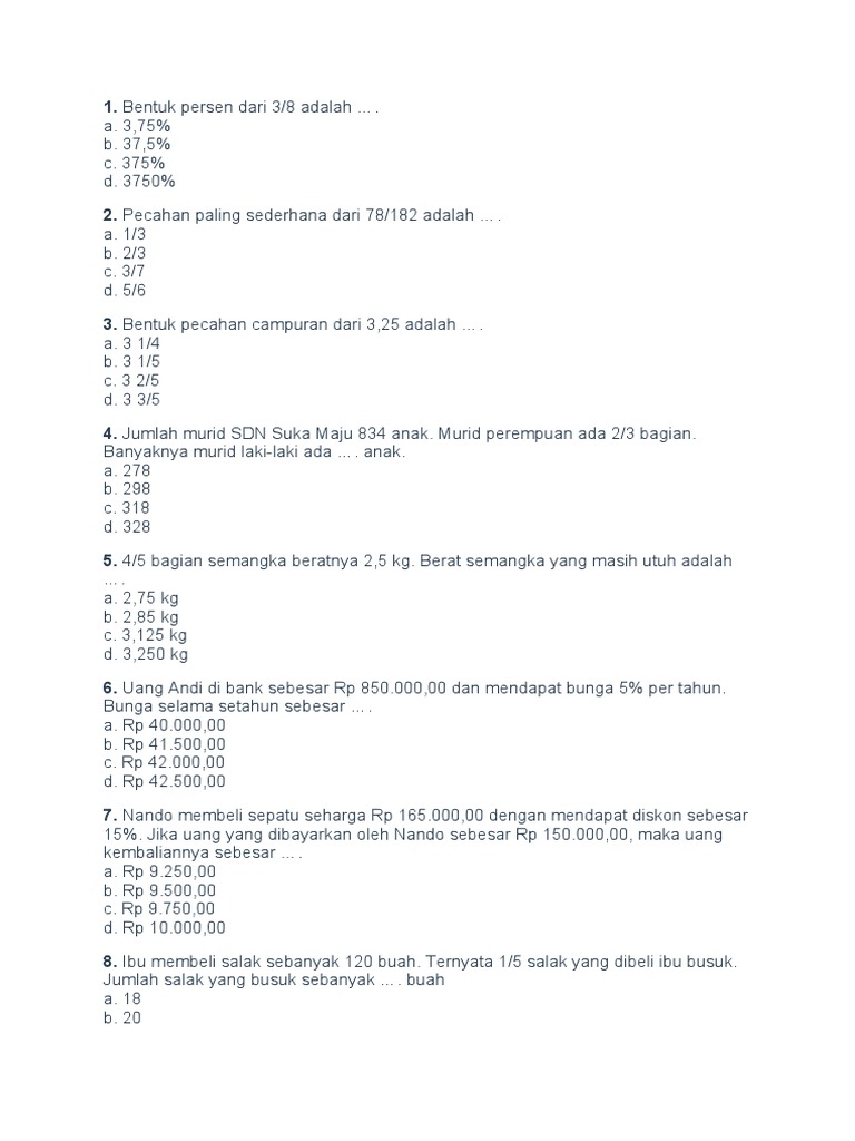 Latihan Soal Mengubah Pecahan Biasa Menjadi Ke Bentuk Persen Dan Kunci Jawaban - Bimbel Brilian