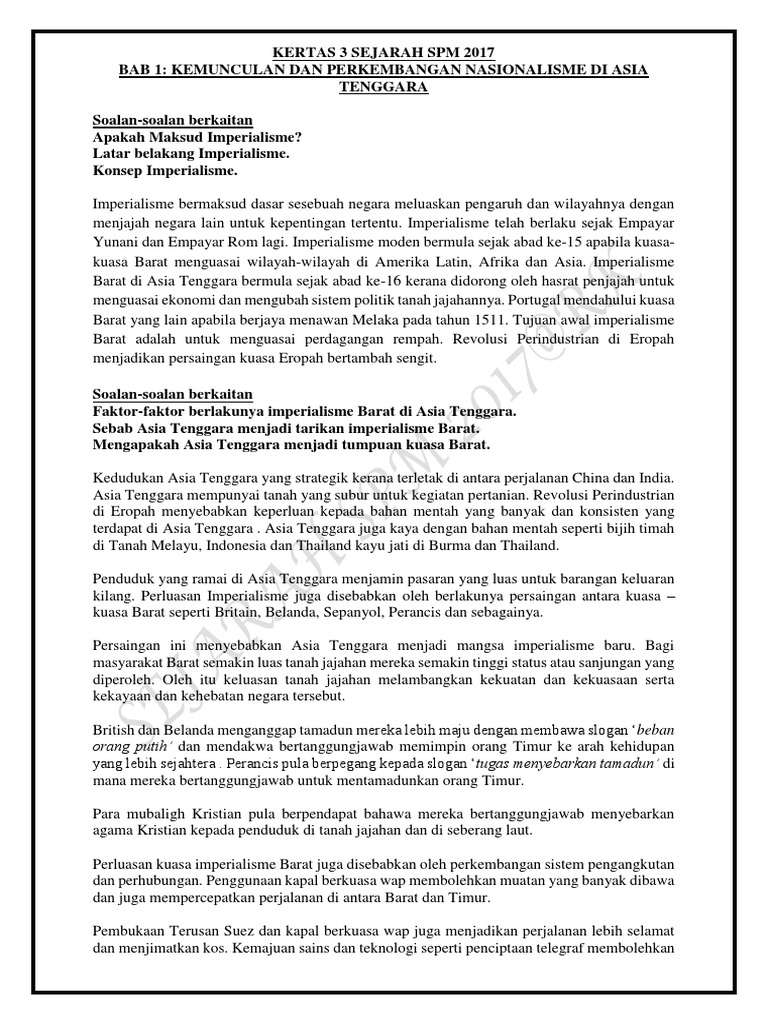 Sejarah Kertas 3 SPM 2017 - Bahan Bantu Jawapan