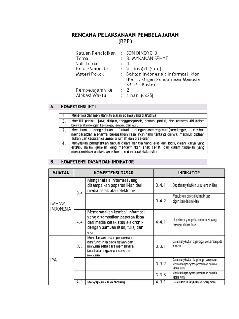 CONTOH RPP KLS 5 TEMA 3.doc - RENCANA PELAKSANAAN PEMBELAJARAN(RPP …