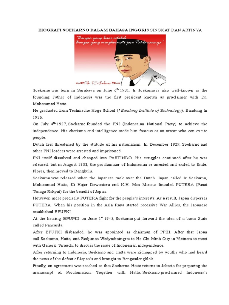 Biografi Soekarno Dalam Bahasa Inggris Dan Artinya …