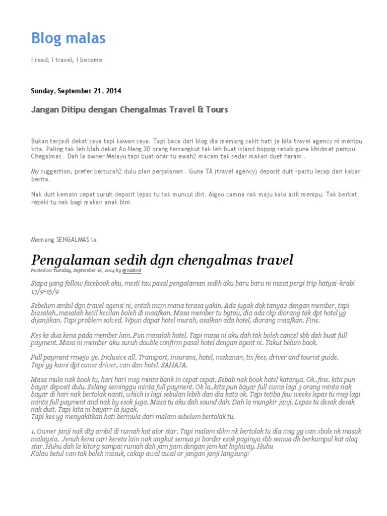 Blog malas: Pengalaman sedih dgn chengalmas travel