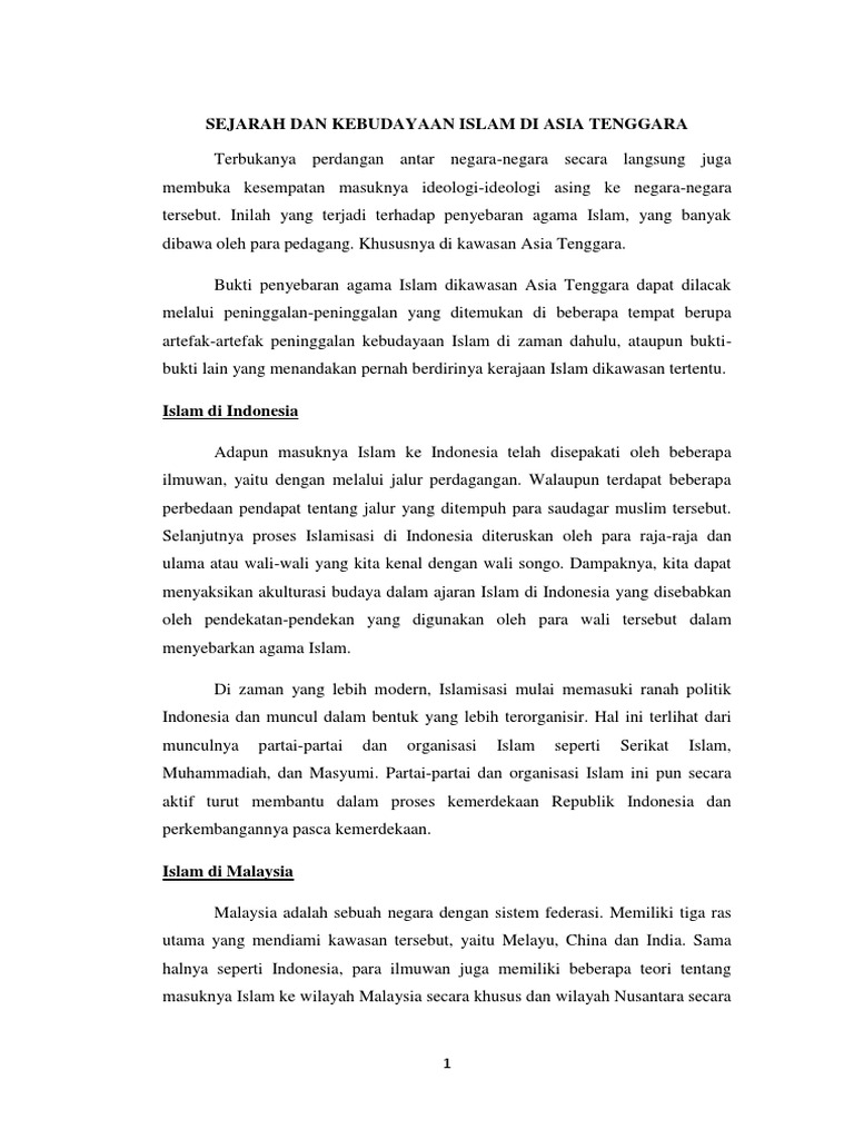 Sejarah Dan Kebudayaan Islam Di Asia Tenggara