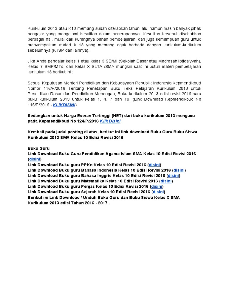 Buku Paket Kurikulum 2013 Untuk SMA Kelas 10 Gratis