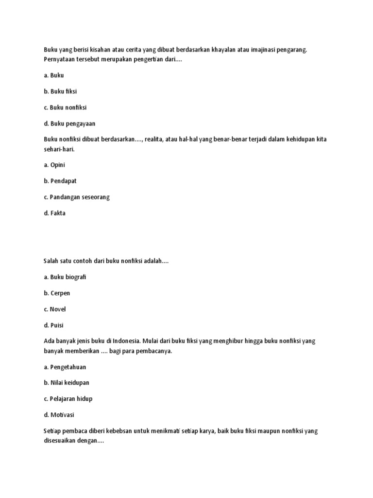 Latihan Soal Materi Buku Fiksi Dan Nonfiksi Kelas VIII