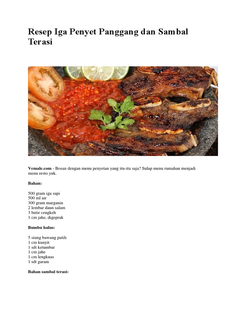 Resep Iga Penyet Panggang Dan Sambal Terasi