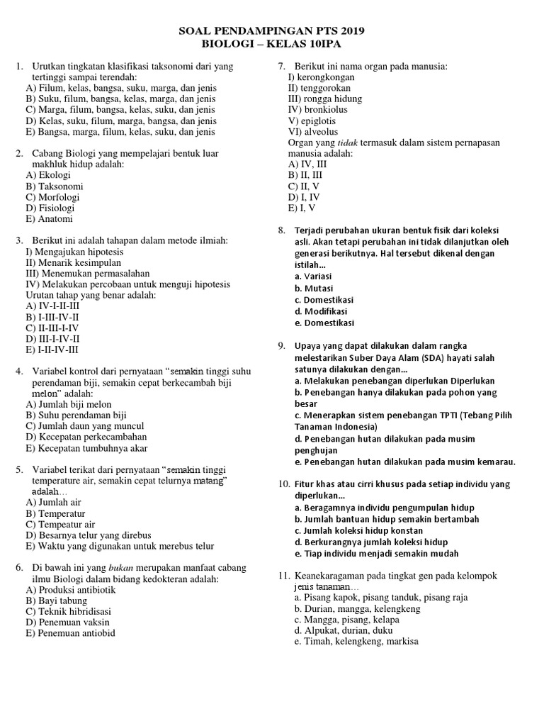 Ini Contoh Soal UTS Biologi Kelas X Semester I tentang Ruang …