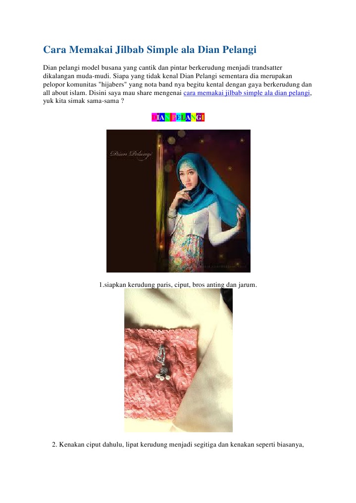 Cara Memakai Jilbab Simple Ala Dian Pelangi